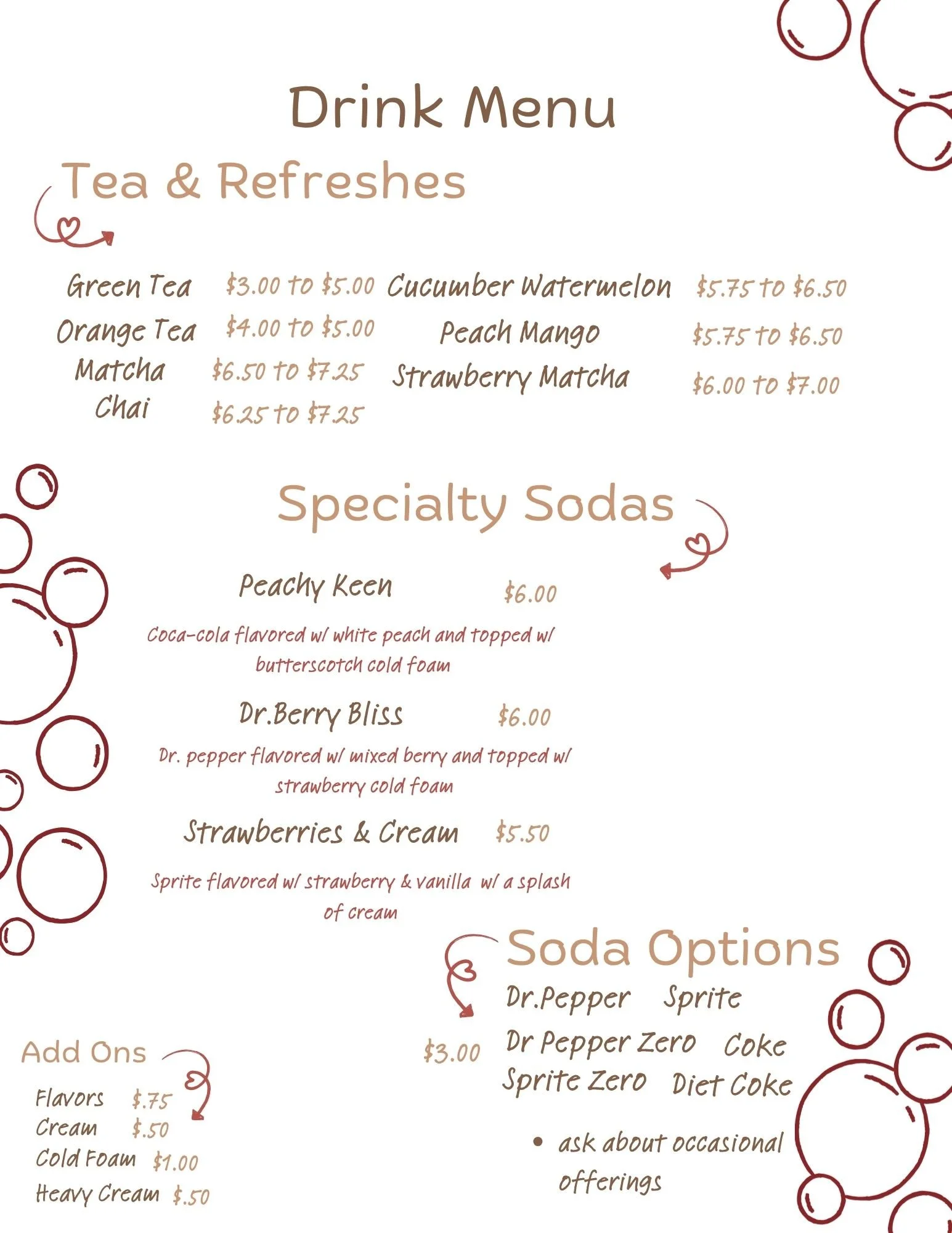 Cozy Space offering local and family friendly service. Indoor and Outdoor seating available